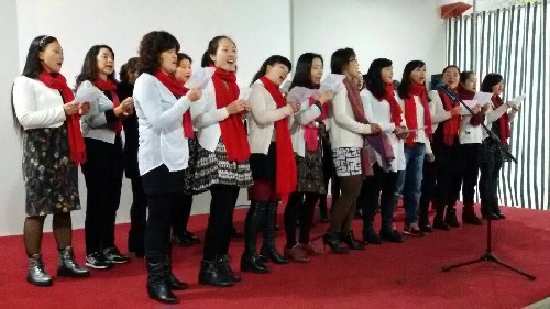 县环保局全局女职工“三.八”妇女节合唱《红梅赞》、《萍聚》